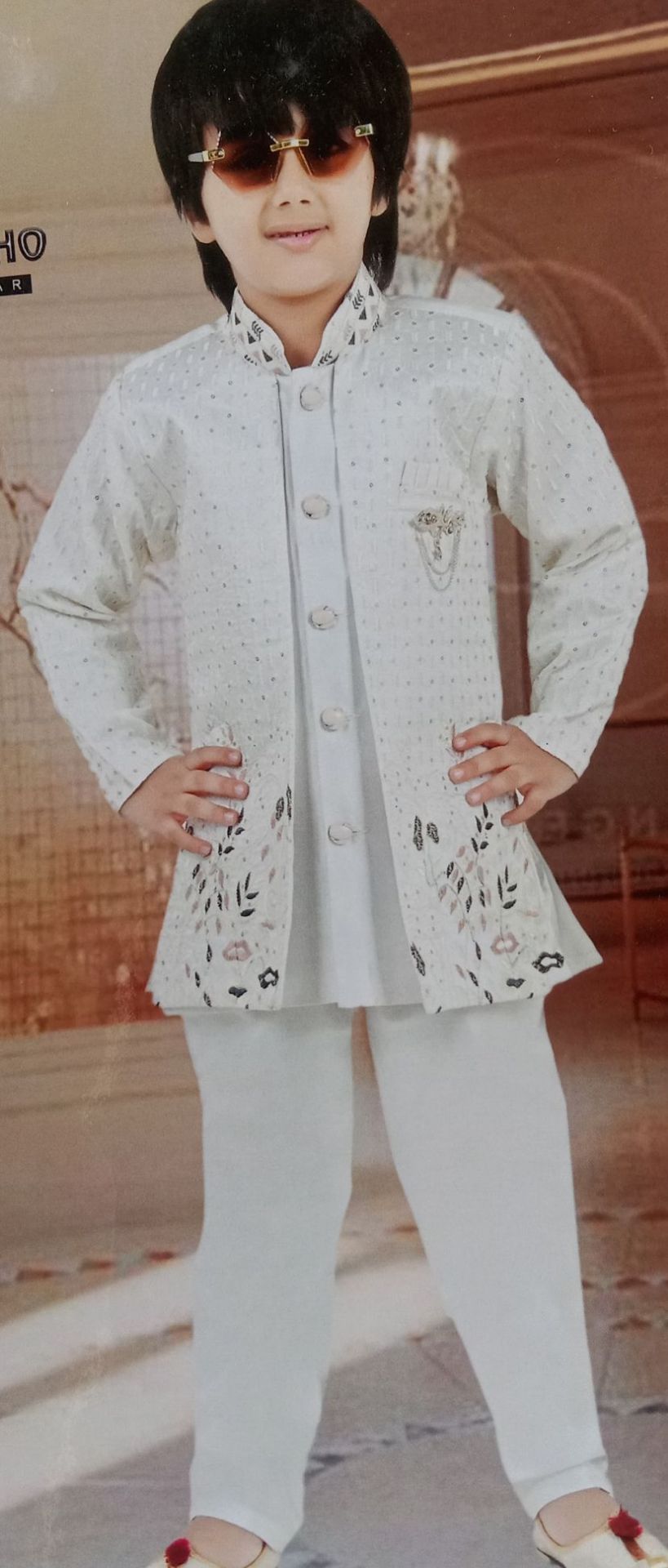 BHERU COLLECTIONS-BAADSHAHO-Boys Party Wear-Sherwani and Dhoti Sets-Cream-NM HAPPY 107