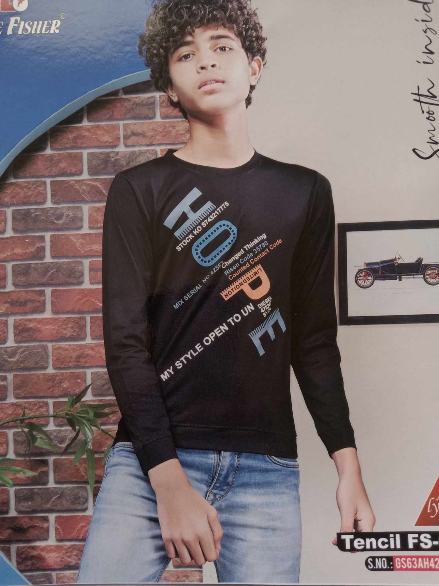 Plus Garment-Blue Fisher-Boys Full Sleave T Shirt-Black- D No-073